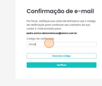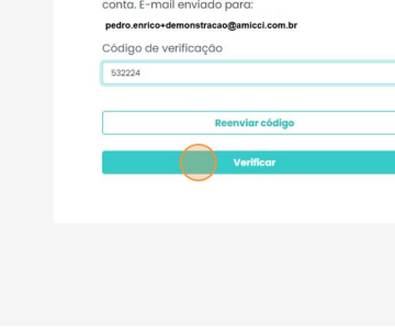 8. Entre com o código de verificação recebido por e-mail nesta tela: