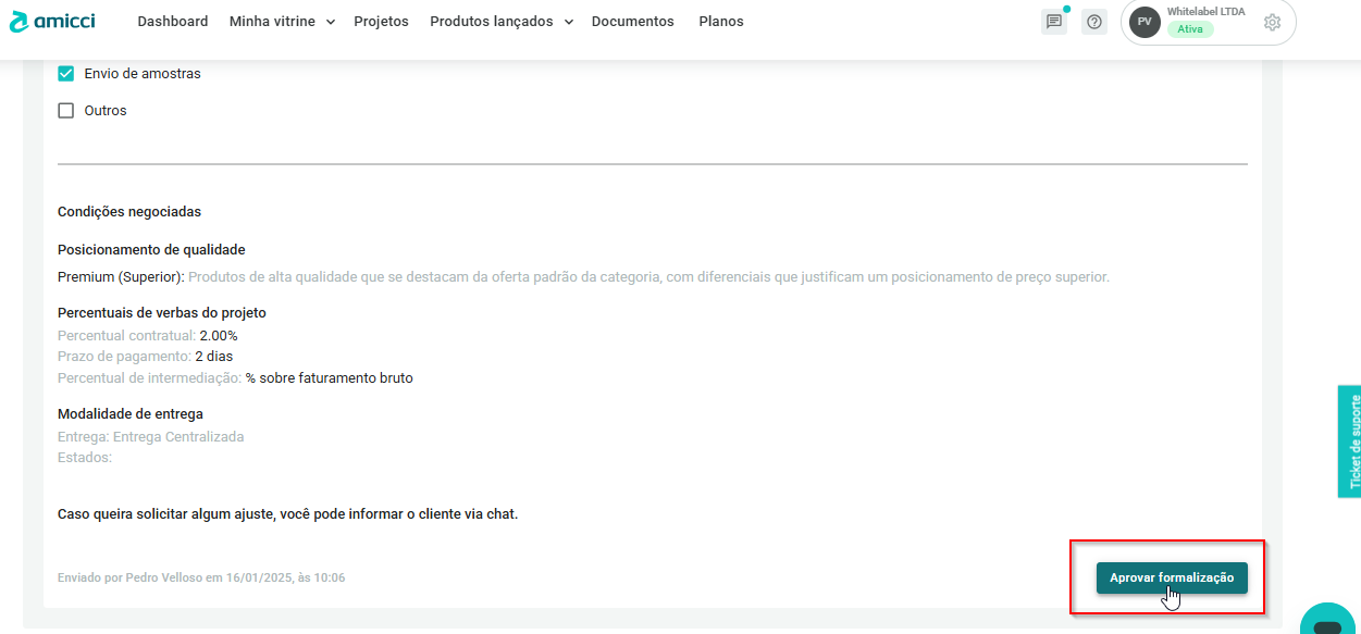 - Revise as informações e caso esteja de acordo, basta clicar em "Aprovar formalização" no final da pagina.