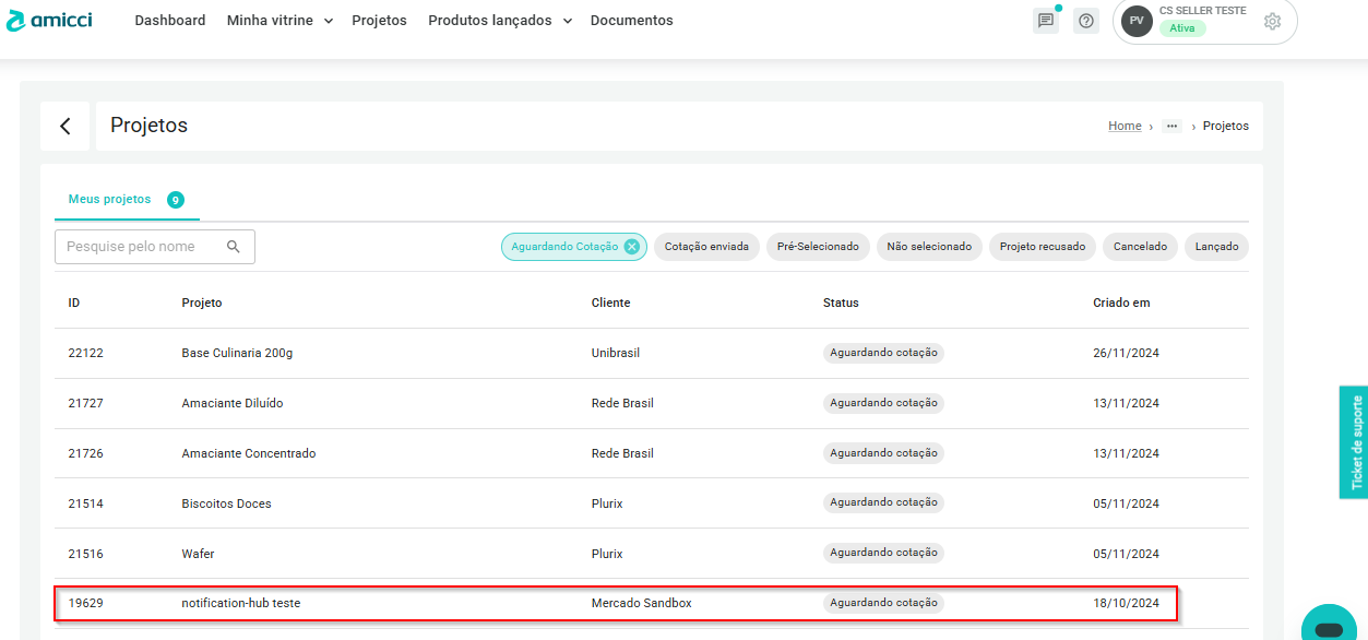 - Clique em "Projetos";