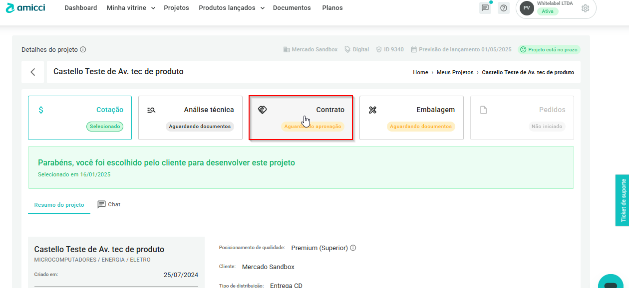 - Clique na aba de "Contrato";