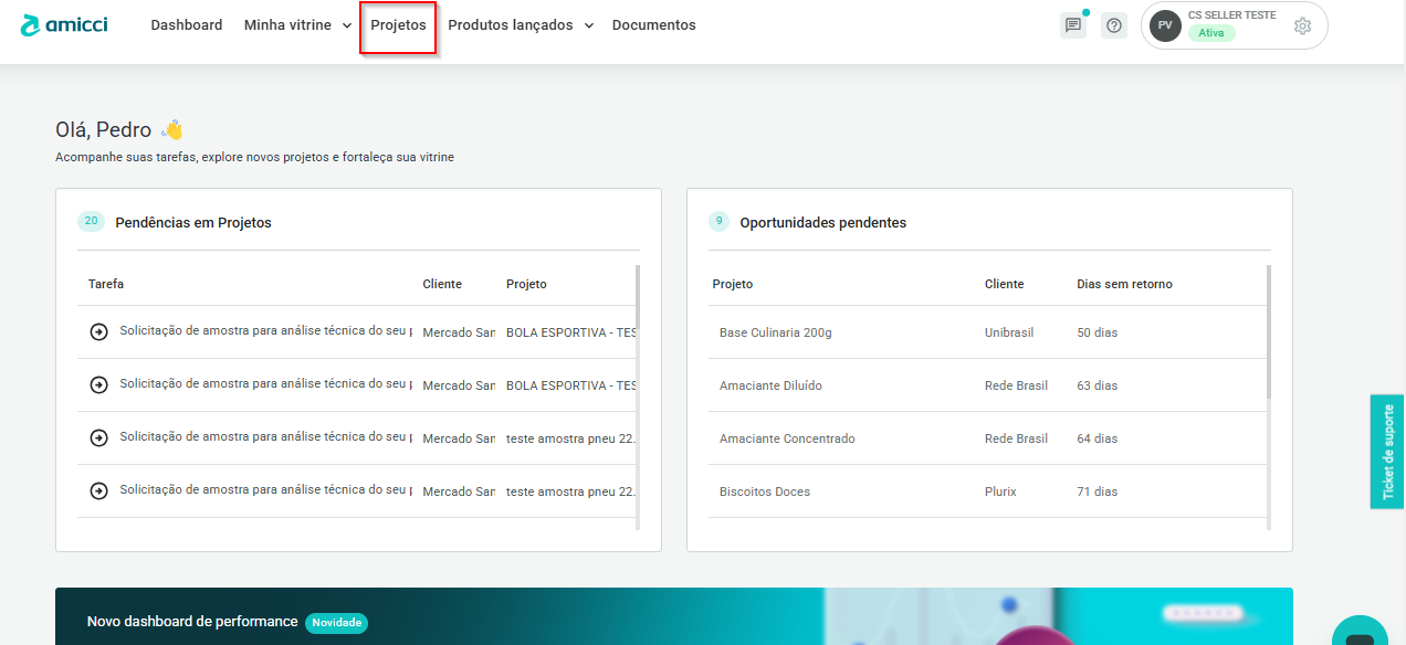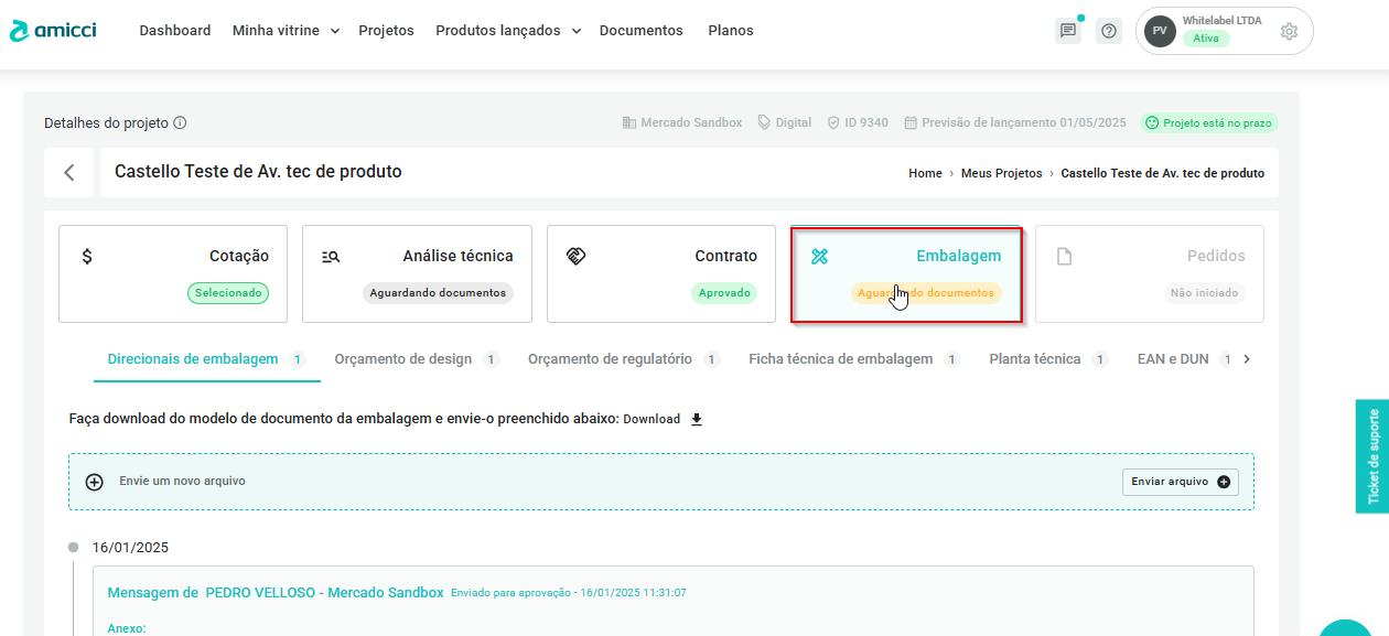 - Em "Projetos" selecione o projeto que precisa validar as informações de embalagem