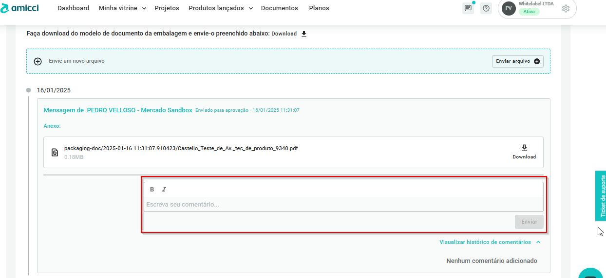 - Acesse a etapa que tem pendencias e envie perguntas ou responda comentários como nas imagens a seguir: