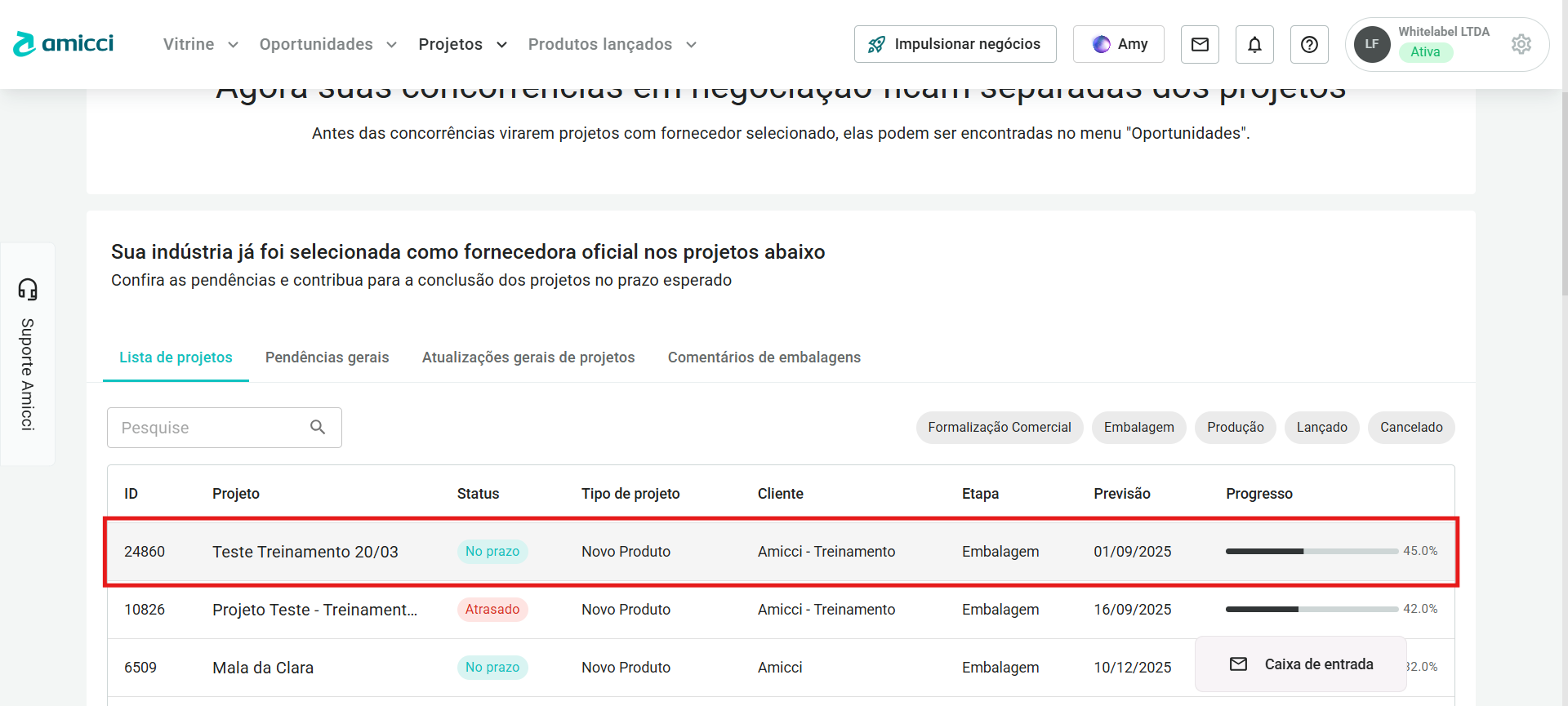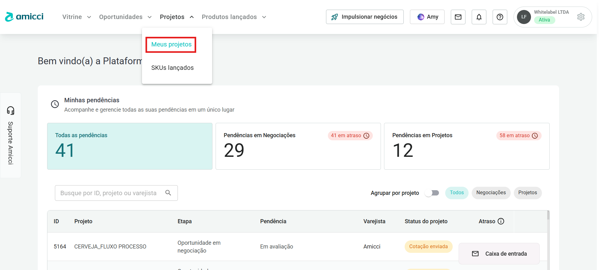 - Clientes: Pelo botão Suporte Amicci presente no canto esquerdo de todas as páginas da plataforma.