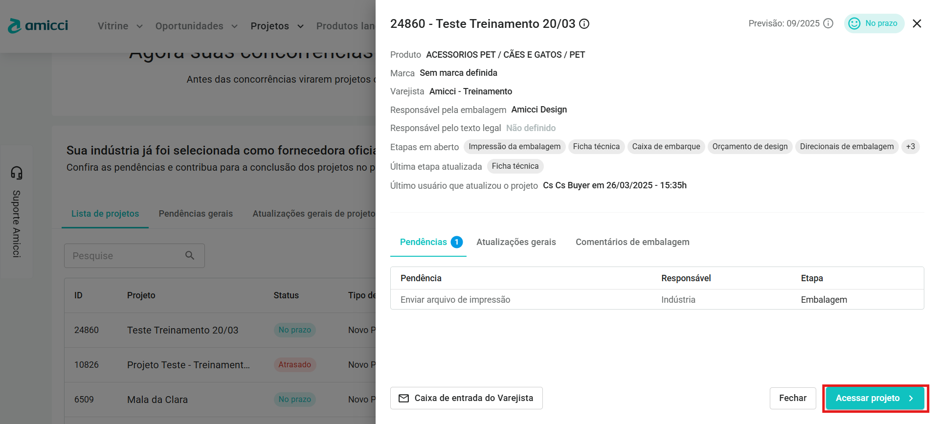 - Após isso, será aberta uma visão resumida do projeto. Agora, basta clicar no botão Acessar projeto para abrir o projeto em si.