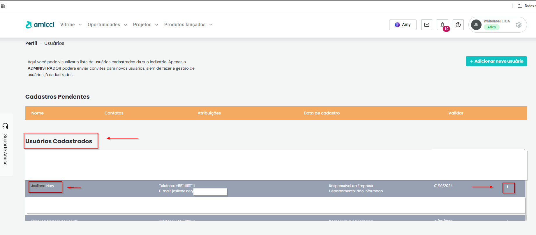 - Procure o seu usuário ou caso seja administrador, busque pelo usuário que irá alterar o telefone;