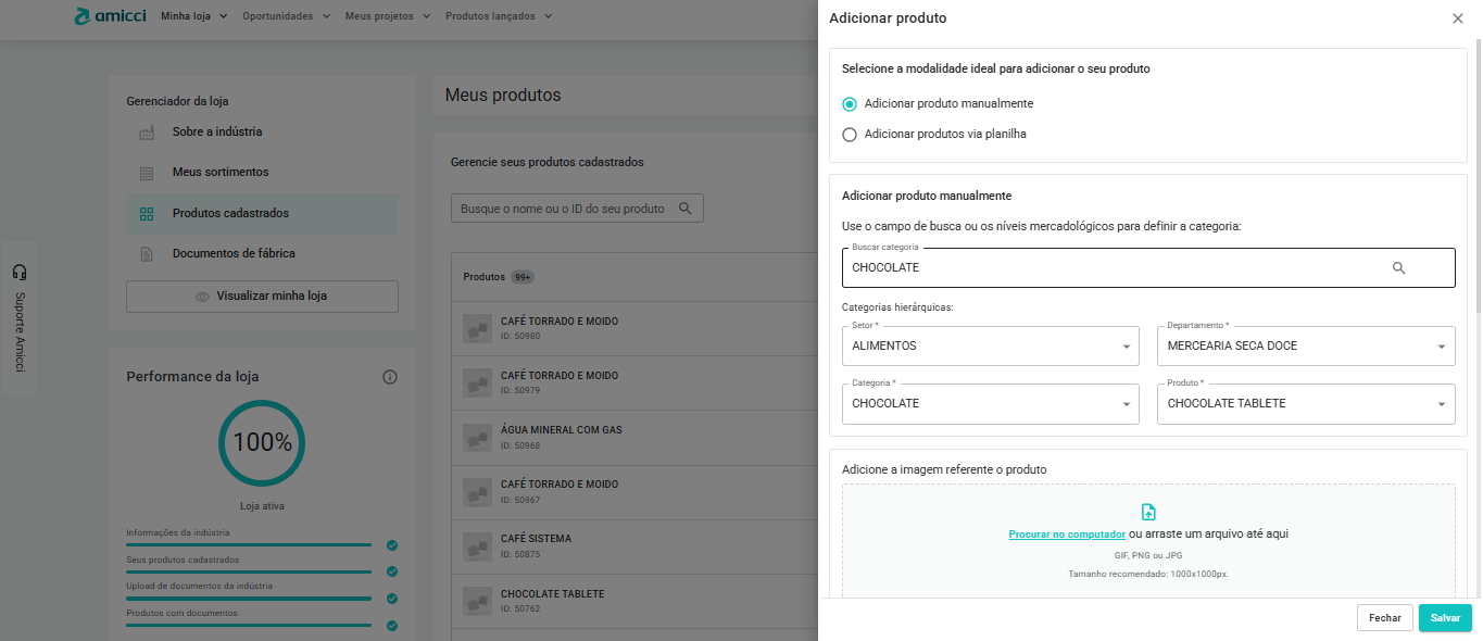 Você pode cadastrar produtos de duas formas: