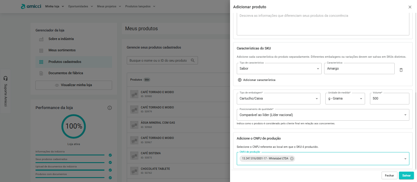 Orientar o cadastro de produtos (SKU) para participação em cotações na plataforma Amicci.